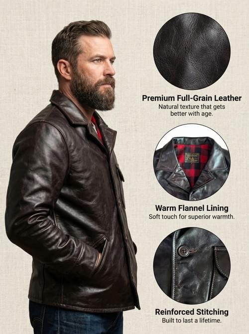 Heritage Full-Grain Leather Jacket – Flannel-Lined Classic for the Modern Gentleman