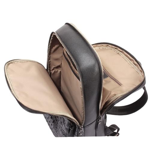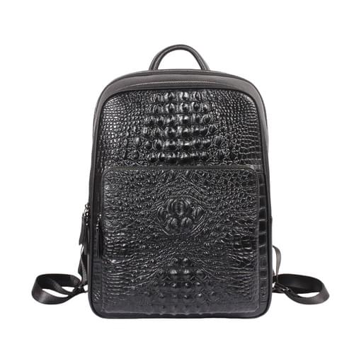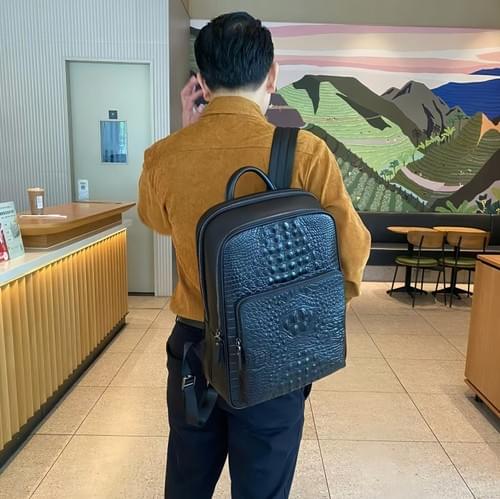 New Men’s Full-Grain Leather Backpack – Large Capacity Crocodile-Embossed Laptop & Travel Backpack